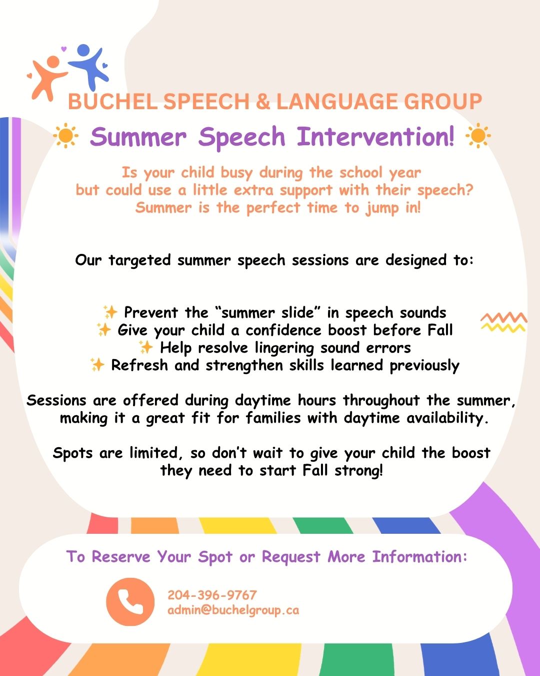 Buchel Speech & Language Group is a full-service, private, speech therapy (speech-language pathology) practice, serving people throughout Manitoba and Northwestern Ontario. We operate a Winnipeg speech therapy office and a second location in Morden, MB.